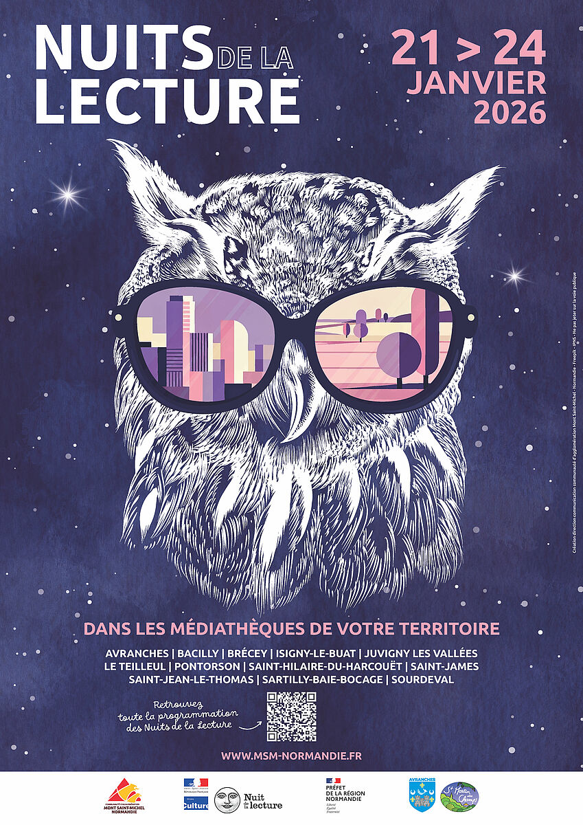 Dans le cadre des Nuits de la lecture 2026, le réseau des médiathèques de la communauté d’agglomération Mont Saint-Michel – Normandie se mobilise pour proposer, du 21 au 24 janvier 2026, une programmation gratuite et ouverte à tous, autour du thème national "Villes et campagnes".