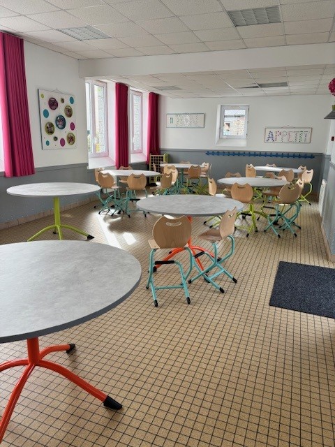 La cantine de l'école publique maternelle a vu des nouveautés en cette rentrée du 2 mars avec l'arrivée de nouveaux mobiliers 100% fabrication français.