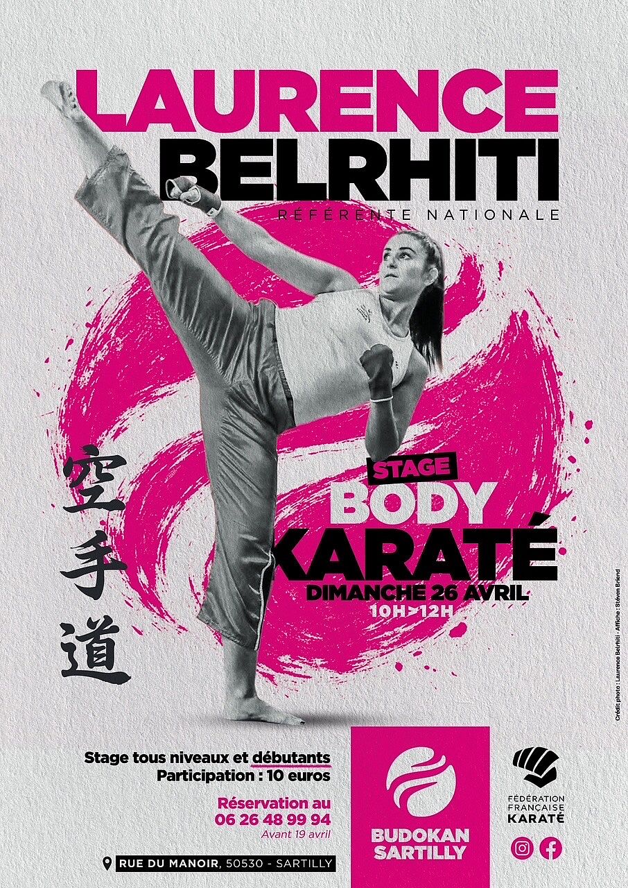 Un stage de body karaté avec Laurence Belrhiti. Un grand nom dans l’univers du body karaté ! Ce stage est ouvert à tous les niveaux même aux débutants.